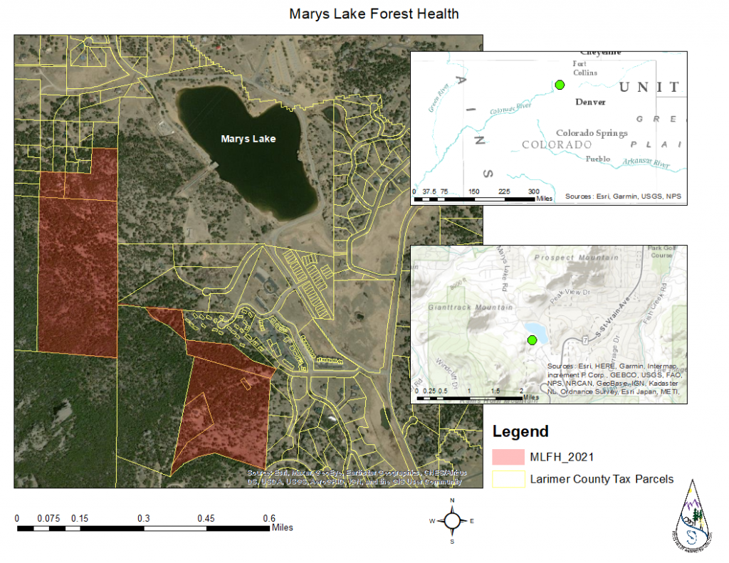 The goal of this project is wildfire mitigation to protect water quality, infrastructure, private property, and access roads. The Marys Lake Forest Health Project will also be another mitigation example site for the Estes Valley community. The project site is in a mixed ponderosa pine forest that has old growth trees and wildlife habitat. Our partnership with the Colorado State Forest Service will help us to successfully plan and implement a project that can be an example of wildfire mitigation in the Estes Valley. EVWC plans to use this project to help with community outreach on forestry and wildfire impacts on watersheds. Our collaboration with property owners and other partners will help us maximize the benefits of this forest health project.